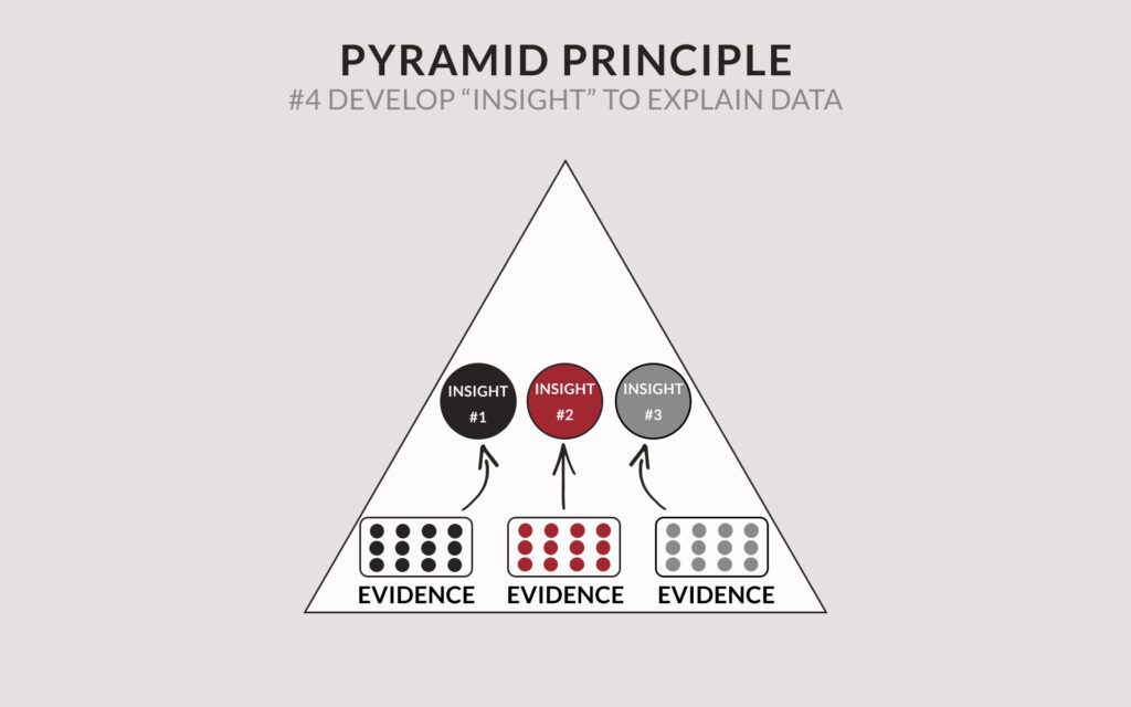 Barbara Minto invented the pyramid principle at McKinsey. She based her thinking on ideas ranging from Aristotle’s Rhetoric and other sources on logic throughout history. Her pyramid principle works really well with the consulting problem-solving process as it is a natural partner for hypothesis-driven thinking.