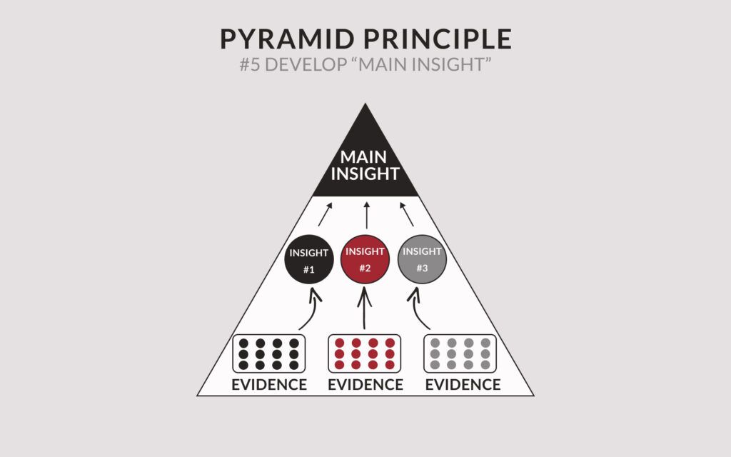 As your key themes are emerging, you may also have a good sense of what the overall takeaway will be. I call this your “main insight.” While you’ll revisit this message over and over again throughout the consulting process, you should always have a good sense of what it is and if you are working in a team, make sure it is communicated and debated.