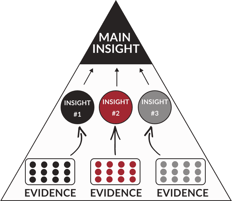 One important thing to remember as you identify your inisghts is that the insight should only be composed of the elements below it in the structure. As Barbara Minto says,
