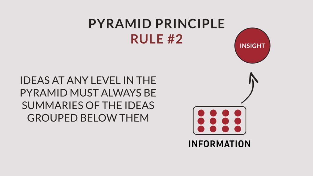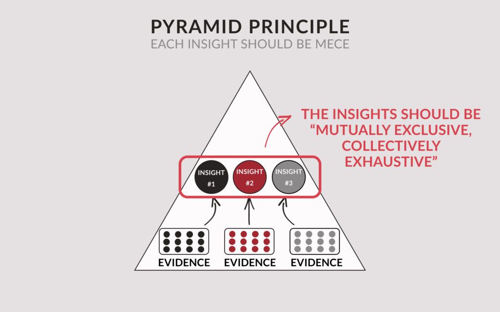 At each level, you want to use the MECE principle we learned in the previous lesson to make sure the ideas are grouped in a way that makes each easy-to-understand a separate and distinct insight.